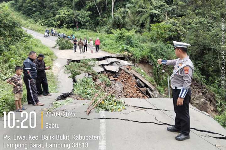“Jalan amblas cukup parah sehingga membahayakan pengendara. Untuk sementara, seluruh kendaraan kami alihkan melalui jalur alternatif Liwa – Sukau – Lintas Barat sampai kondisi memungkinkan,” ujarnya.